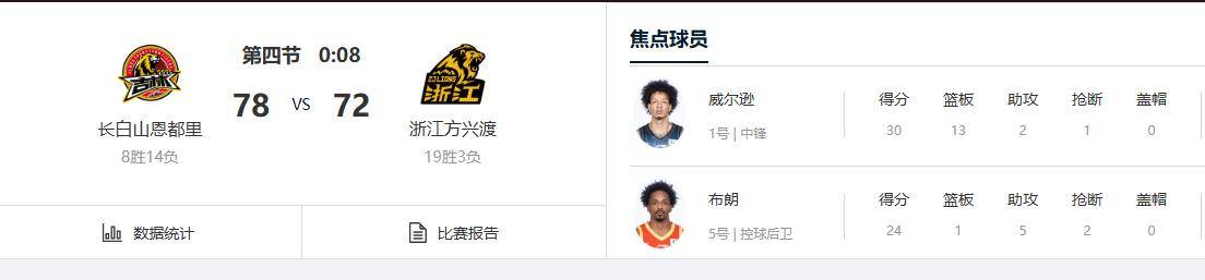 此役,曾繁日拿到12分9篮板5助攻1抢断2盖帽,姜伟泽19分6篮板2助攻,威尔逊30分13篮板!广厦队得分最高的是布朗,但是26中8的效率低迷,本场拿到24分5助攻!国手朱俊龙全场3中0没有得分!