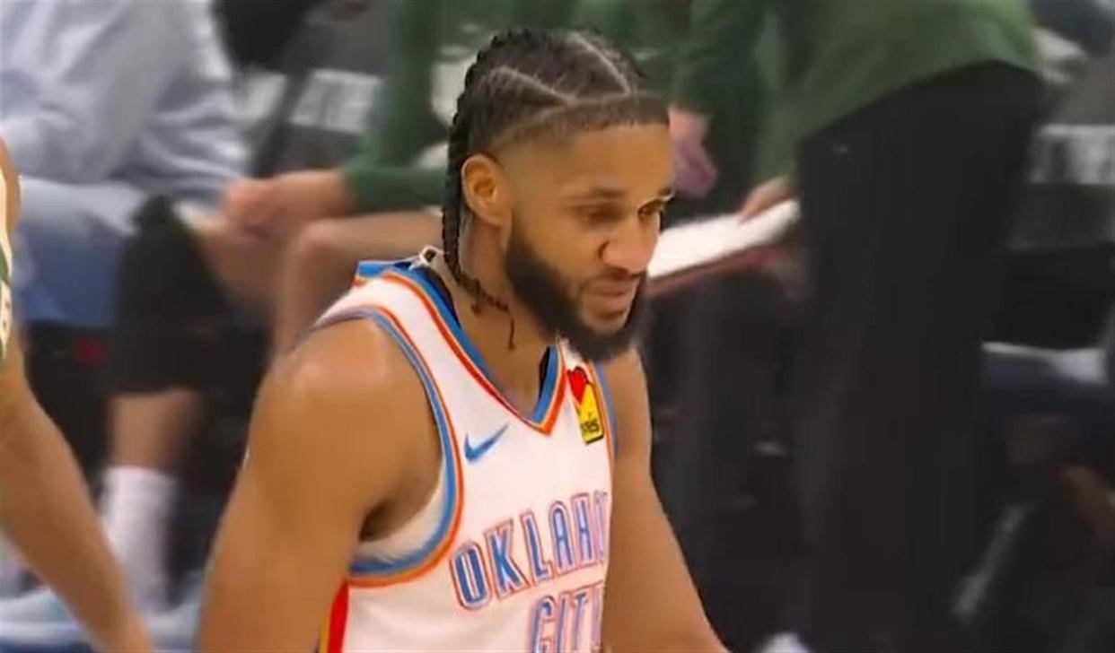 反观雷霆队,全队只有三人得分上双。二年级中锋切特·霍姆格伦拼尽全力,12投5中,罚球6罚全中,得到16分、13个篮板、4次助攻和2次盖帽的两双数据,他是雷霆内线唯一的支柱。以赛亚·乔11投5中,三分球9投4中,得到全队最高的17分。替补出场的贾里德·麦凯恩得到13分。其他球员的表现则难以令人满意,吕冈茨·多尔特12投仅4中,卡森·华莱士7投1中。雷霆全队三分球45投15中,命中率33.3%,并且出现了15次失误,让对手通过快攻得到了23分。