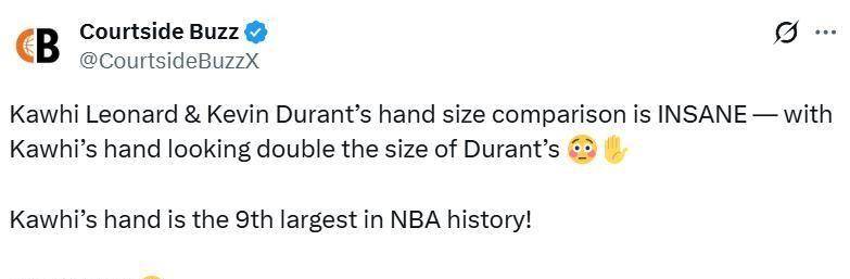 全明星赛结束后,这张击掌图和小卡单节31分的话题还在持续发酵,很多篮球媒体都在分析这双大手对小卡职业生涯的影响。 从马刺时期到猛龙夺冠,再到快船,这双大手一直是他的标志性特征之一。