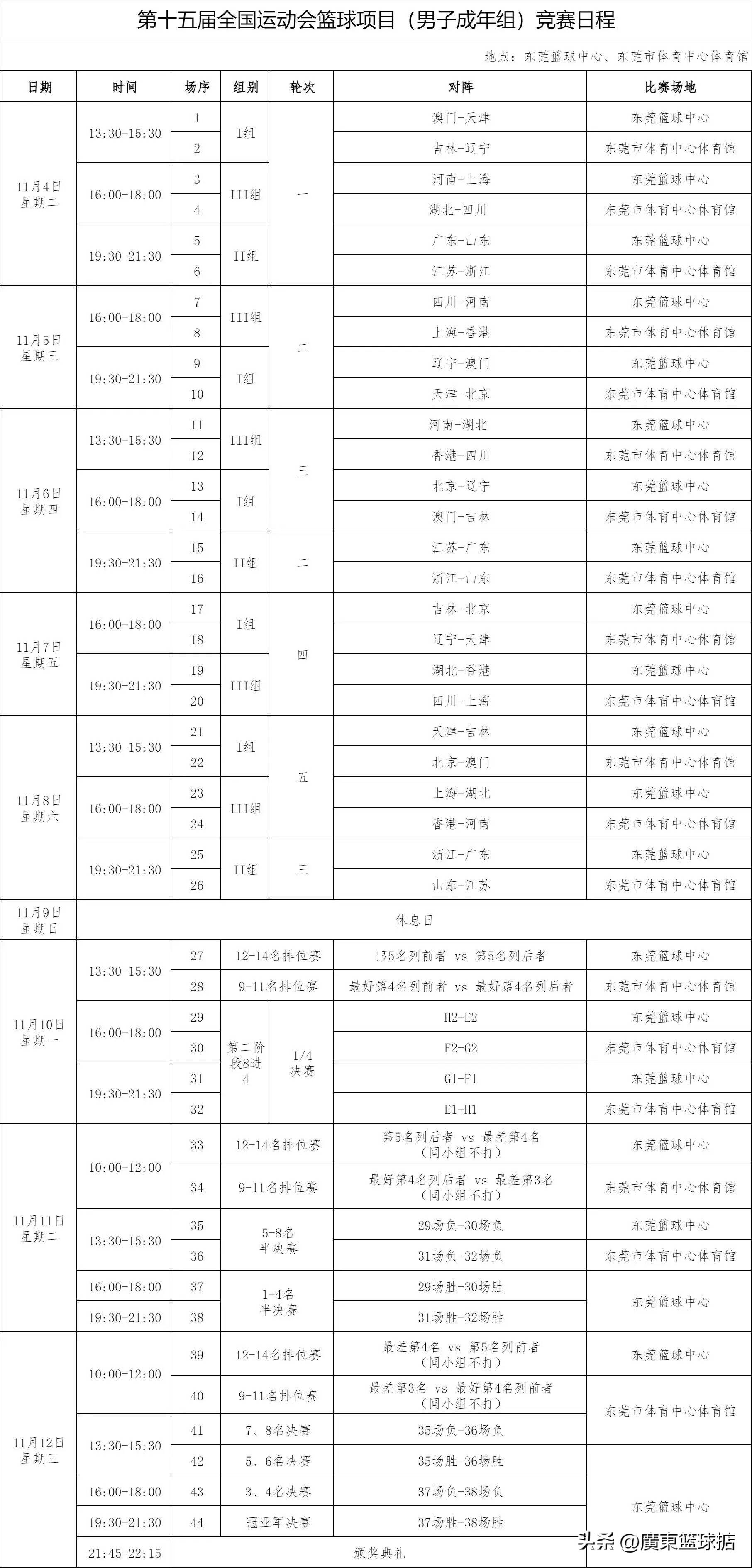颁奖典礼定于11月12日晚上9点45分开始,为本届全运会男篮赛事画上圆满的句号。