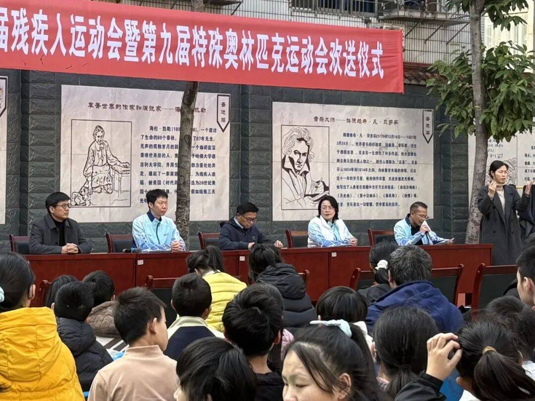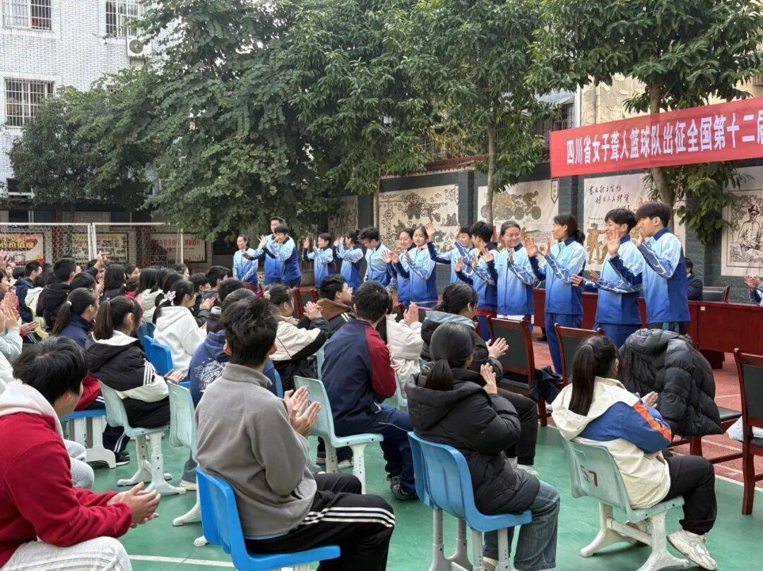 市残联相关领导,宜宾市特殊教育学校全体师生,齐聚一堂,为女篮姑娘们壮行鼓劲,期盼她们在赛场上勇创佳绩、载誉归来。